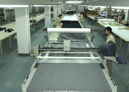 公司采用CAD計(jì)算機(jī)輔助排料系統(tǒng)進(jìn)行排料,該系統(tǒng)準(zhǔn)確、高效。鋪料機(jī)代替手工鋪料的優(yōu)點(diǎn)使鋪料均勻、整齊、松緊適宜、降低工人勞動(dòng)強(qiáng)度。